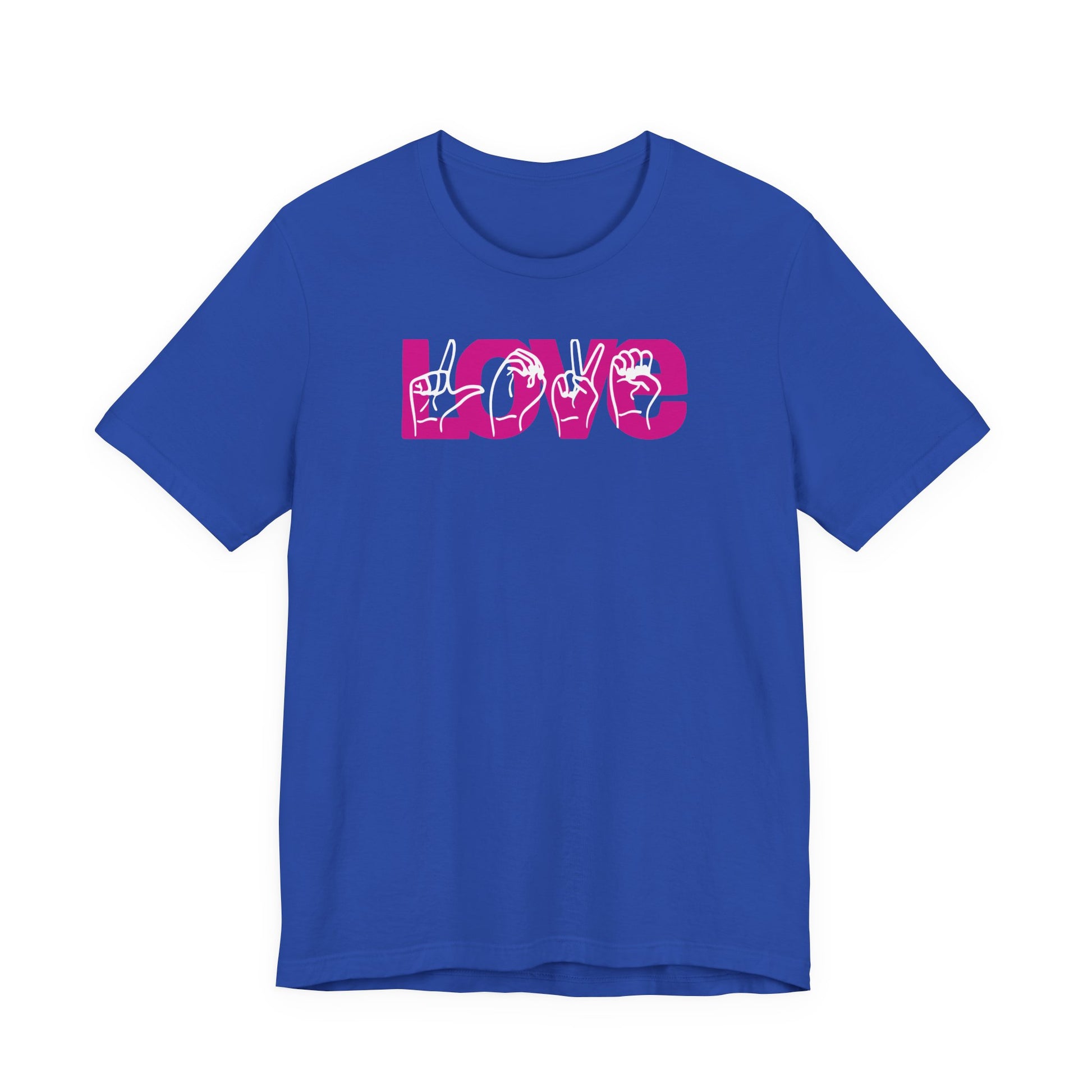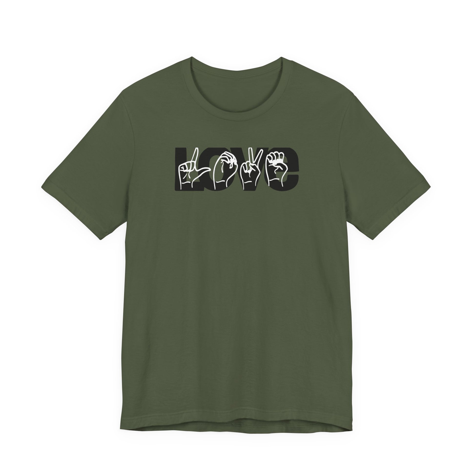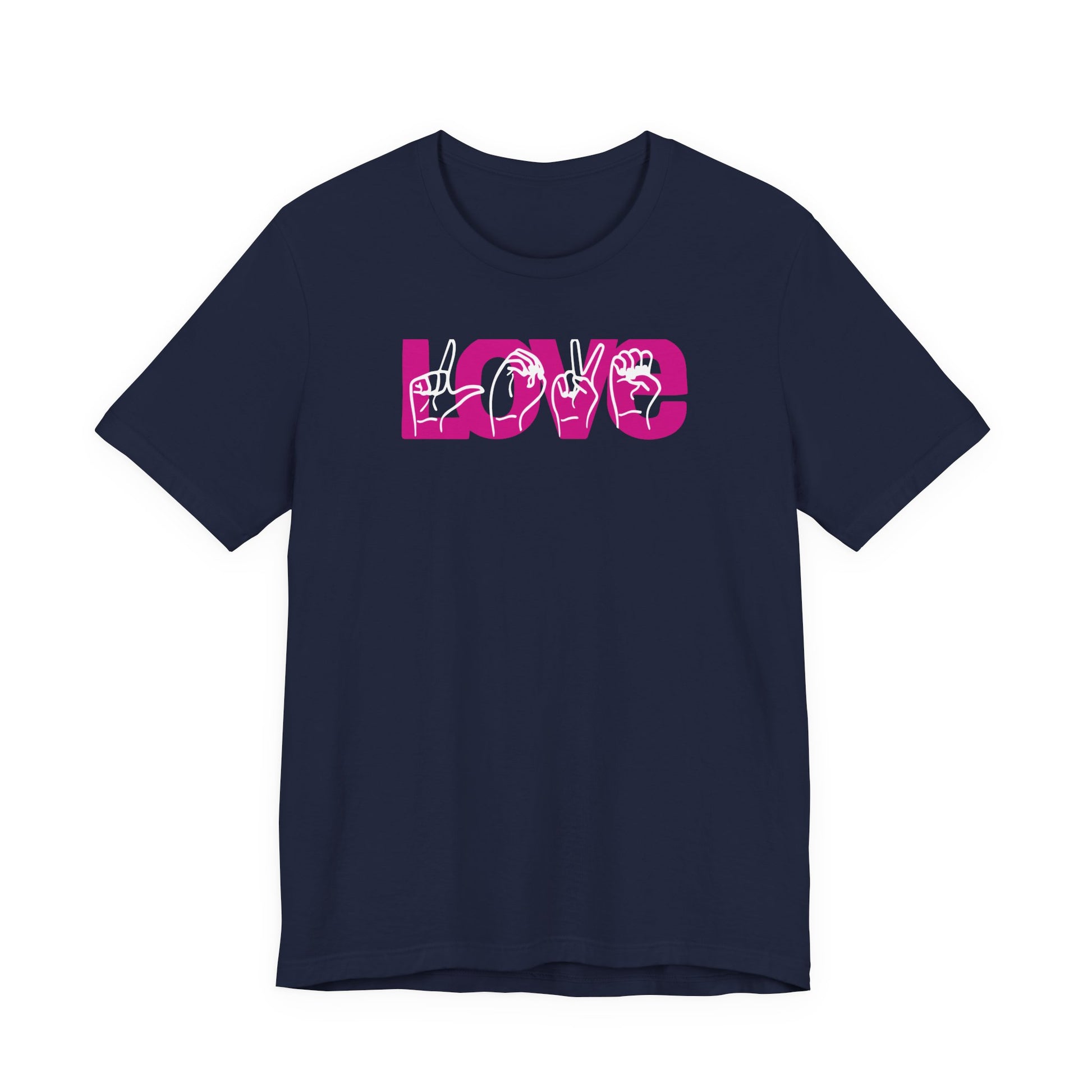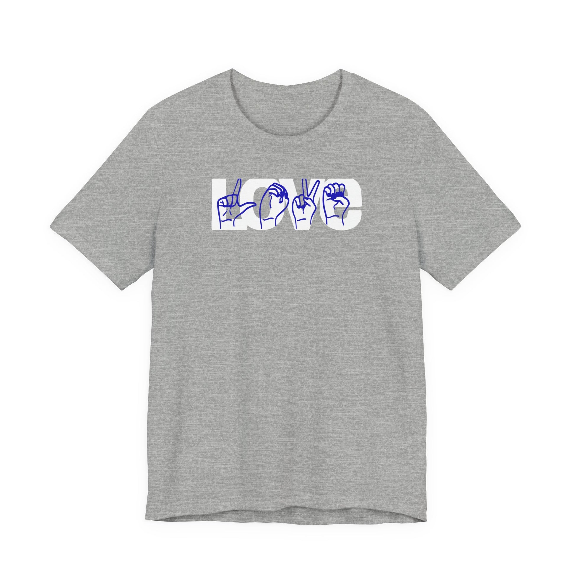 LOVE (2-tone) in American Sign Language (ASL), Unisex Jersey Short Sleeve Tee