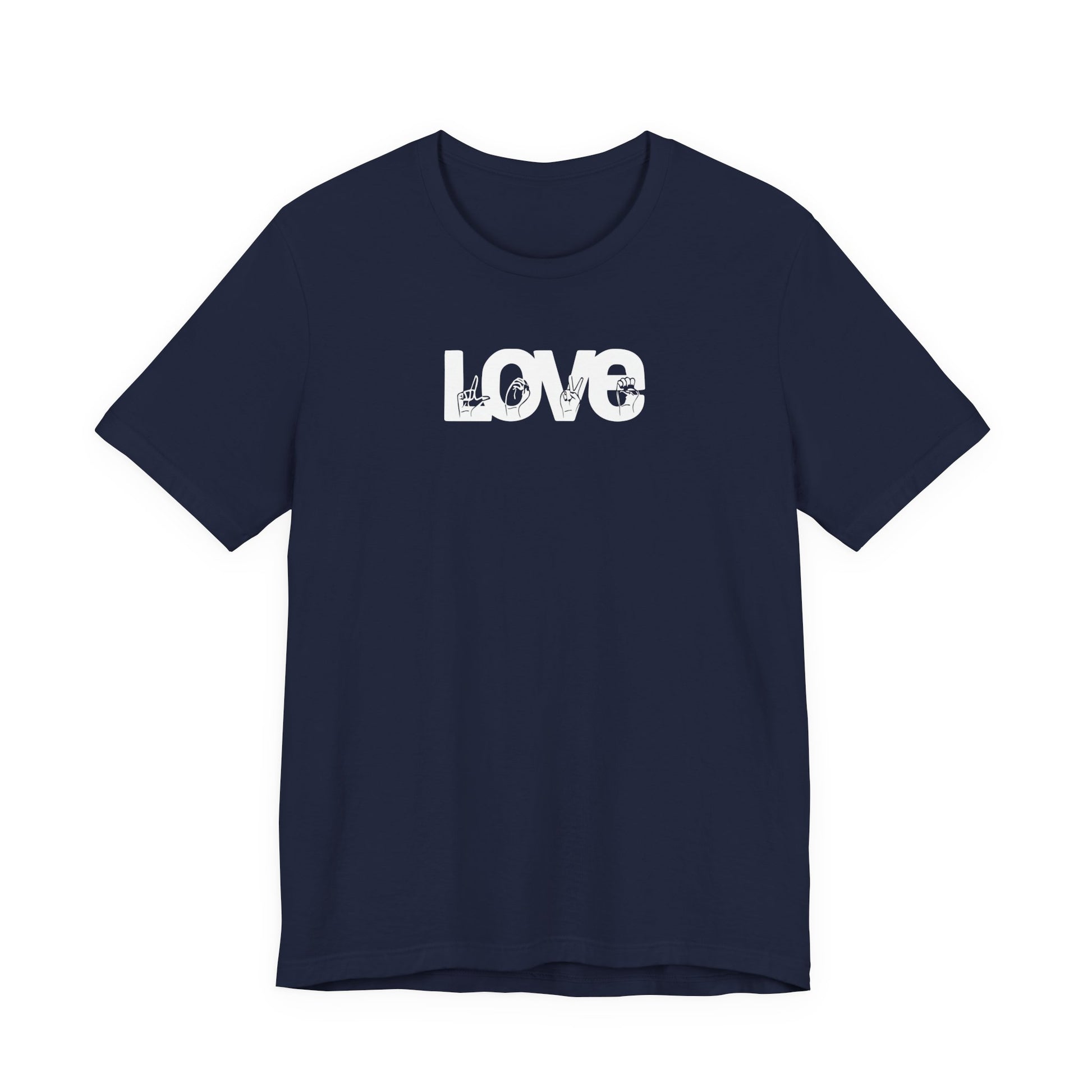 LOVE (White Design) in American Sign Language, Unisex Jersey Short Sleeve Tee